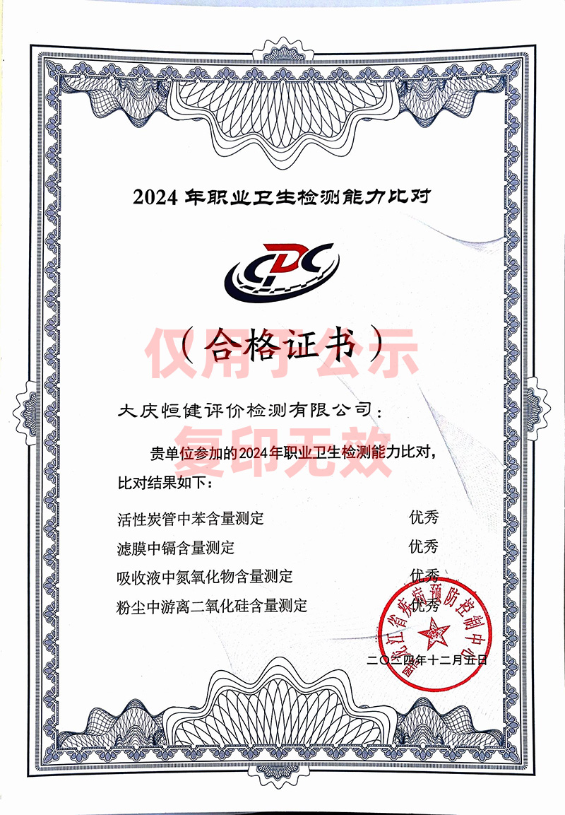 2024年職業(yè)衛(wèi)生檢測能力比對